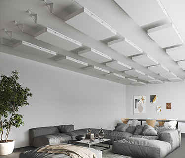‘Our horizontally floating acoustic sails not only look strikingly elegant, they also offer true sound absorption for professionals. The absorbers are highly effective and can be easily and flexibly installed in the room using the cable system. Simply choose the right room size and we will provide you with an acoustic set specially calculated for your room.’