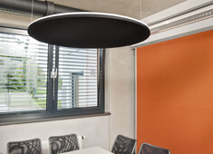 ‘Our wall and ceiling sails are an excellent and stylish possibility for reducing echoes because they fit harmoniously into the space. The sails ensure a pleasant room acoustics in offices, halls, foyers, lecture theatres and conference rooms in particular. The acoustic fabric cover is removable and washable, so that the sails can also be used in areas with high dust levels.’